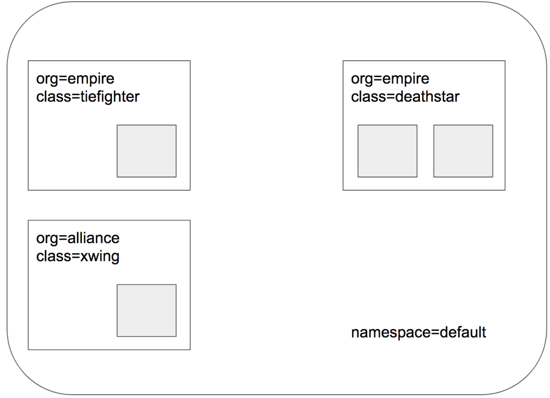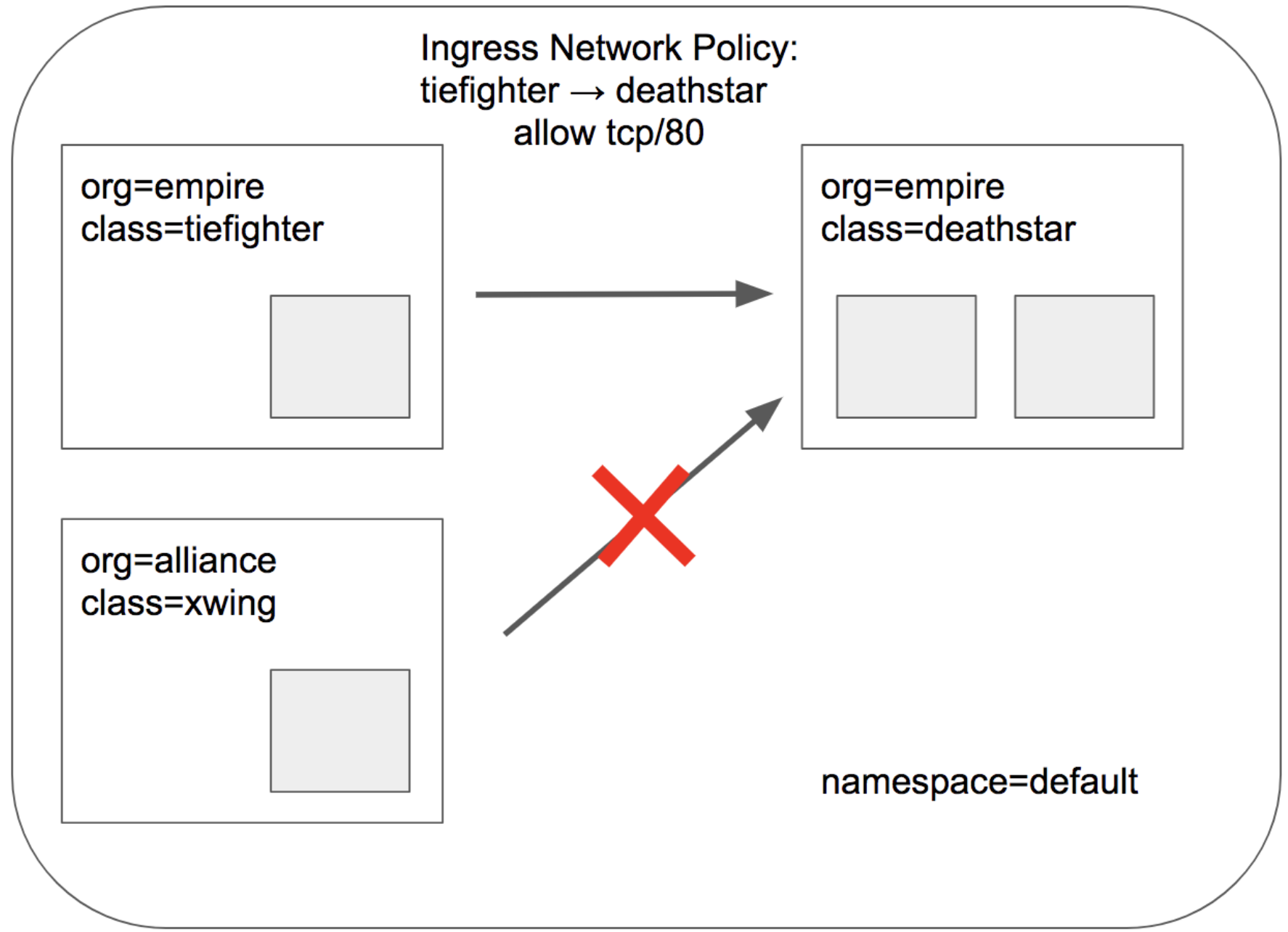 지금까지와 같은 간단한 시나리오에서는 tiefighter/xwing에 deathstar에 대한 권한을 부여하거나 부여하지 않는 것으로 충분했다.
