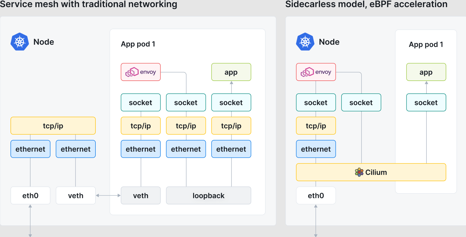 위 그림은 cilium이 네트워킹 스택에서 iptables를 우회할 수 있음을 보여준다.