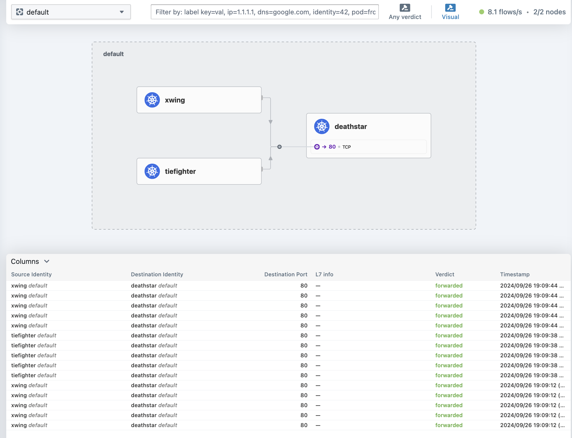 예를 들어, DNS가 제대로 작동하는지, 정책 관련 문제로 애플리케이션이 실패하는지, 트래픽이 어디서 차단되는지 등의 문제를 확인하기 어려울 수 있지만 이런 문제 해결을 위해 로그를 검토하는 것은 어렵고 시간이 많이 걸리는 프로세스일 수 있다.