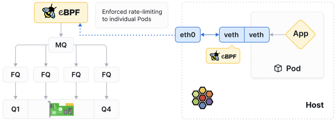 cilium의 Badwidth Manager를 사용하면 단 한 줄의 YAML로 파드당 속도를 제한할 수 있다.