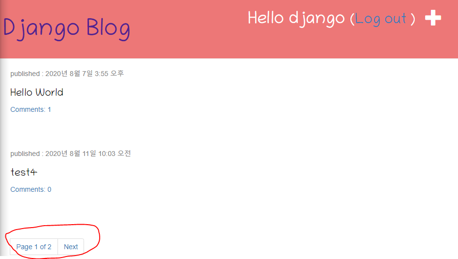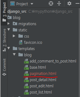 - {% include 'blog/pagination.html' with page=posts %} 추가